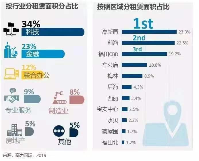 2019年第三季度,來自科技行業(yè)租戶的凈吸納量占全市的34%,是寫字樓需求最為強勁的行業(yè),隨后是金融和聯(lián)合辦公行業(yè)。作為深圳甲級寫字樓最為主要的需求行業(yè)之一,深圳科技行業(yè)今年1-7月的工業(yè)增加值超過9%。并且在第三季度中,前兩大租賃成交全部來自科技行業(yè),區(qū)域主要集中在南山。我們預(yù)計六月初出臺的針對前海注冊企業(yè)的“歸巢計劃”租金補貼政策將會進一步發(fā)揮作用。