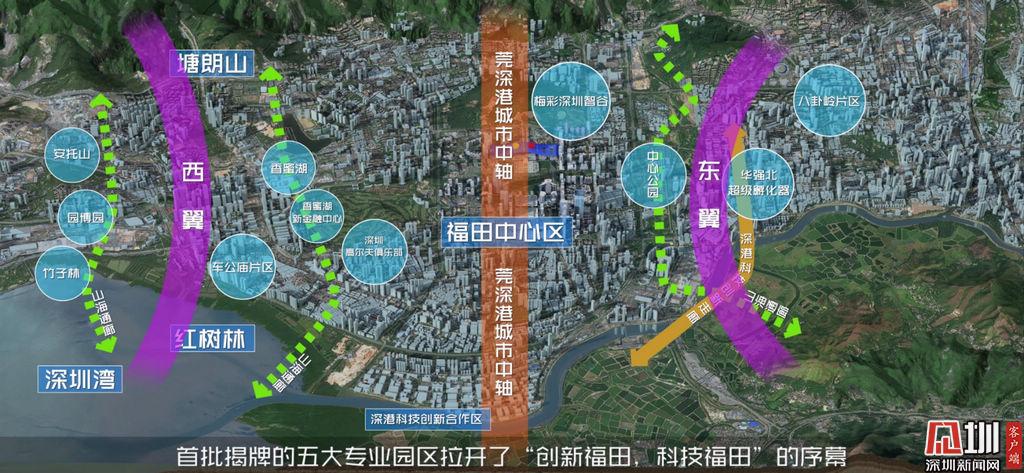 隨著大屏幕上的光束從市民中心出發(fā),依次穿過1個主會場、4個分會場,福田正式啟用了新一代信息技術(shù)產(chǎn)業(yè)園、深港國際科技園(廣田國際中心)、國際生物醫(yī)藥產(chǎn)業(yè)園、灣區(qū)國際金融科技城4個專業(yè)科技園區(qū),將與稍后啟用的國際量子研究中心、已經(jīng)開放的華強(qiáng)北5G應(yīng)用體驗(yàn)街區(qū),共同形成“五園一街”的科技創(chuàng)新發(fā)展新格局。如果把深港科技創(chuàng)新合作區(qū)、香蜜湖新金融中心比作兩大核心引擎,“五園一街”無疑為之注入了無限的創(chuàng)新動能。