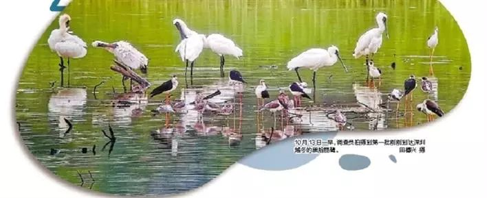 8、昨日一早,10只黑臉琵鷺在秋雨中飛抵福田紅樹林保護(hù)區(qū)魚塘,被正在進(jìn)行鳥類同步調(diào)查的深圳觀鳥協(xié)會調(diào)查員發(fā)現(xiàn)。據(jù)悉,這是今年候鳥遷徙季節(jié)到來后首批來到深圳越冬的黑臉琵鷺。