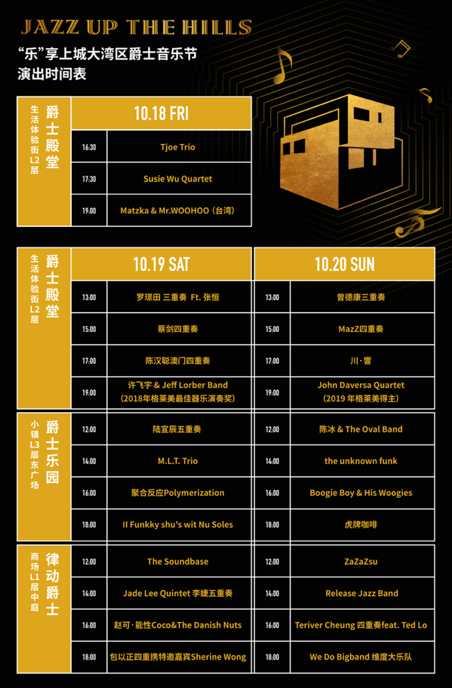 音樂(lè)節(jié)主題:2019“樂(lè)”享上城大灣區(qū)爵士音樂(lè)節(jié)JAZZ UP THE HILLS