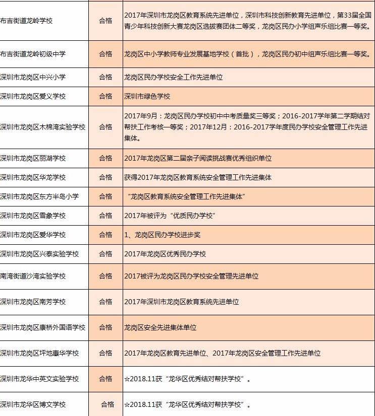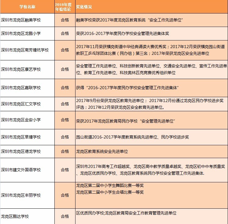 近日,深圳教育局在其官網(wǎng)發(fā)布深圳市民辦中小學辦學情況信息公告。最新公告顯示:2018年度年檢結(jié)論為“不合格”的學校共有8所,“基本合格”的有12所,其他均為“合格”或“不滿一年未年檢”。其中,不合格的8所學校分別為:深圳市富源學校、深圳市展華實驗學校、深圳市龍華區(qū)愛孚實驗學校、深圳市龍華區(qū)寶文學校、深圳市龍華區(qū)牛欄前學校、深圳市龍華區(qū)六一學校、深圳市龍華區(qū)博恒實驗學校和深圳市龍華區(qū)偉民小學。主要涉及違規(guī)招生問題。