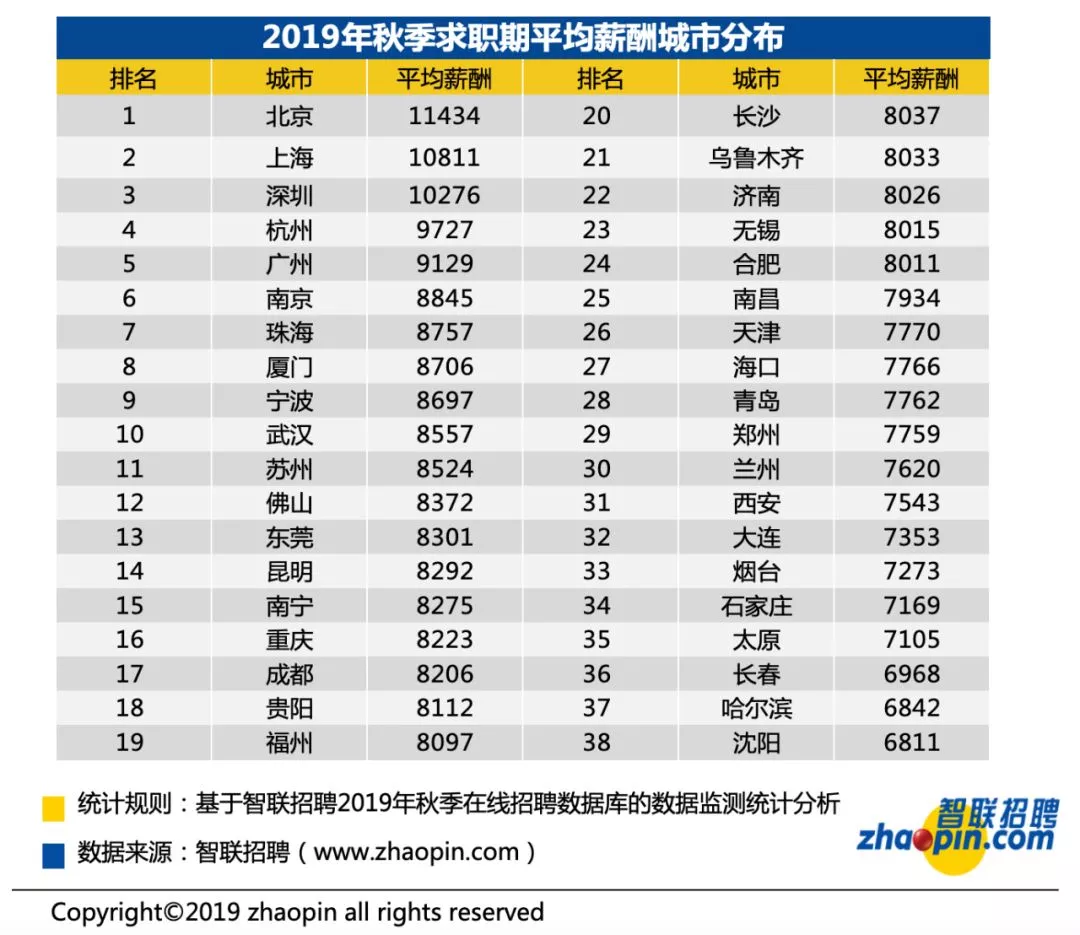 深圳的平均薪酬為10276元/月!