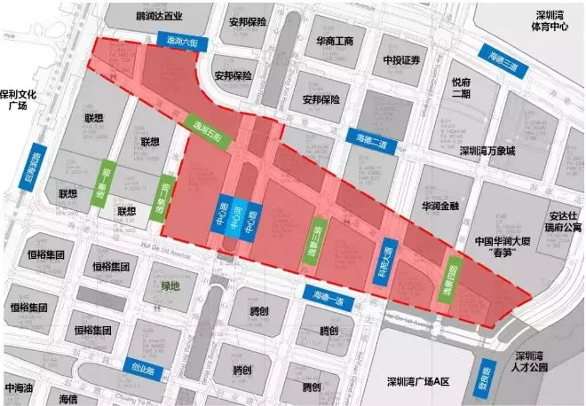 處于后海中心區(qū)“三橫一縱”中最重要的“一橫”,位于后海中心區(qū)核心文化設(shè)施帶,是以創(chuàng)業(yè)路為軸線、人才公園公共岸線為生態(tài)資源,展現(xiàn)后海片區(qū)重要形象的空間場(chǎng)所,是未來(lái)城市商業(yè)文化多元功能綜合發(fā)展的重要軸線。