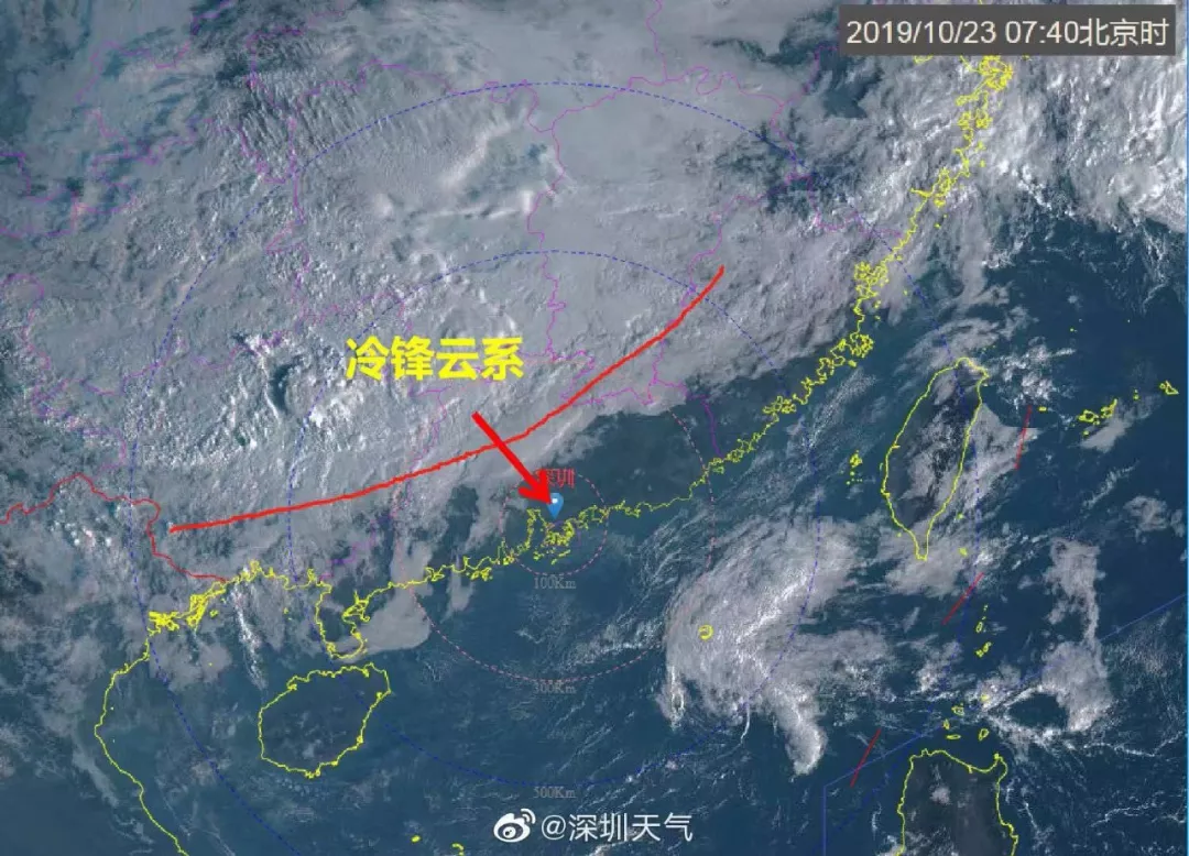 目前冷空氣前鋒已到達(dá)粵北,預(yù)計(jì)今日傍晚前后到貨,深圳屆時(shí)深圳云量增多,可能伴隨著分散小雨。