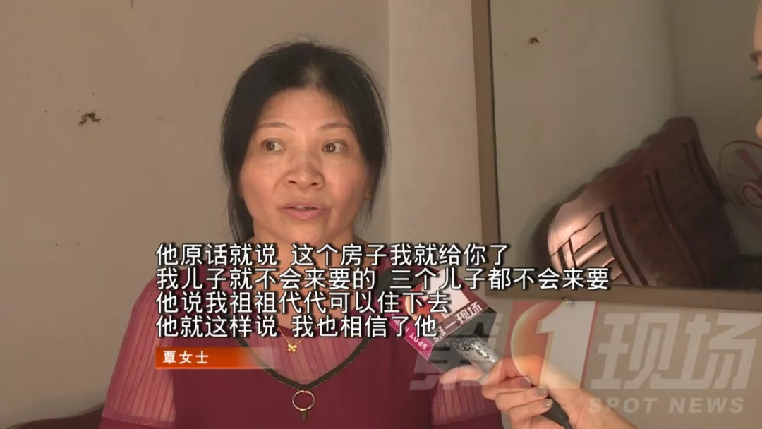 覃女士說,在照顧黃先生期間,相處的挺愉快,只是好景不長,黃先生在一次意外中摔倒,并于2002年離世。覃女士告訴記者,臨終前黃先生為了報答她的照顧,曾承諾將自己住的房子無條件給覃女士居住。