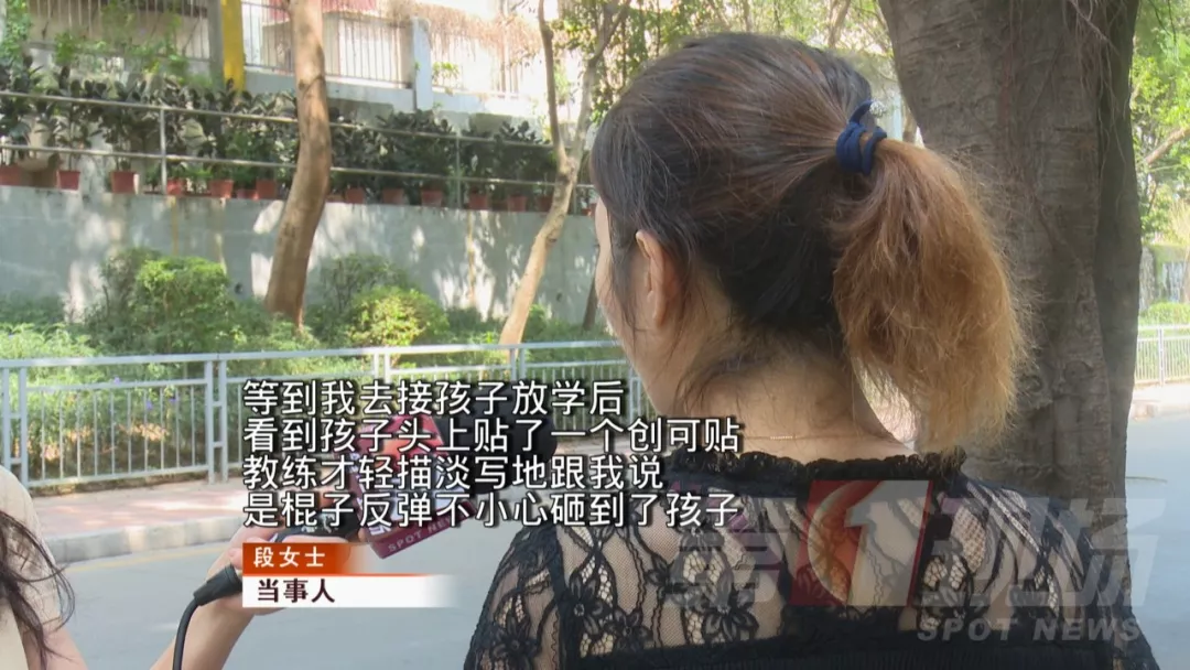 監(jiān)控畫面中被教練用棍棒砸中的孩子,正是段女士7歲的兒子小劉。段女士說,孩子在課堂上受傷后,教練和培訓(xùn)機(jī)構(gòu)并沒有第一時間通知她,甚至在她來接孩子時,也沒有主動告知實(shí)情。