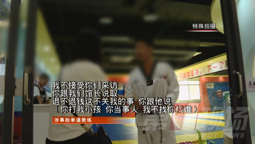 記者陪同陳女士來到這間跆拳道館,在現(xiàn)場有一名男子,陳女士說就是涉事教練。記者想要了解情況,但該男子反應(yīng)激烈。