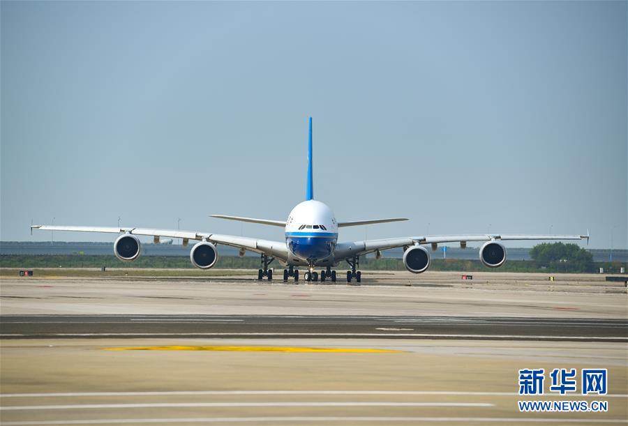 10月27日,南方航空空中客車A380客機(jī)抵達(dá)深圳機(jī)場(chǎng)。當(dāng)日下午,由全球最大寬體客機(jī)——空中客車A380執(zhí)飛的南航CZ3153次航班由深圳起飛前往北京,標(biāo)志著這款“空中巨無霸”機(jī)型重返深圳機(jī)場(chǎng)。南航曾在2014年5月開始啟用A380執(zhí)飛京深航線,后因動(dòng)態(tài)運(yùn)力調(diào)配停飛。新華社記者毛思倩攝