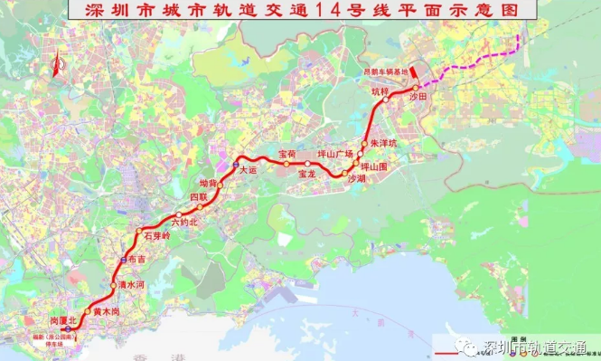 站點(diǎn):崗廈北、黃木崗、清水河、布吉、石芽嶺、六約北、四聯(lián)、坳背、大運(yùn)、寶荷、寶龍、沙湖、坪山圍、坪山廣場、朱洋坑、坑梓、沙田