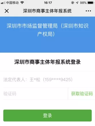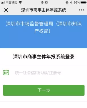 第一步:通過(guò)掃描新版營(yíng)業(yè)執(zhí)照二維碼或進(jìn)入深圳市場(chǎng)監(jiān)管官微點(diǎn)擊“公眾服務(wù)”欄目下的“商事主體年報(bào)”進(jìn)入手機(jī)年報(bào)登錄界面。