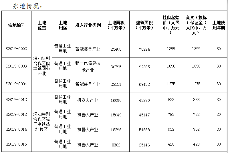 當(dāng)天,深圳市土地房產(chǎn)交易中心發(fā)布公告,受深圳市規(guī)劃和自然資源局深汕管理局委托,將以掛牌方式公開出讓位于深汕特別合作區(qū)的E2019-0002等7宗地使用權(quán)。掛牌期自2019年11月25日起至2019年12月4日15時止。宗地情況如下: