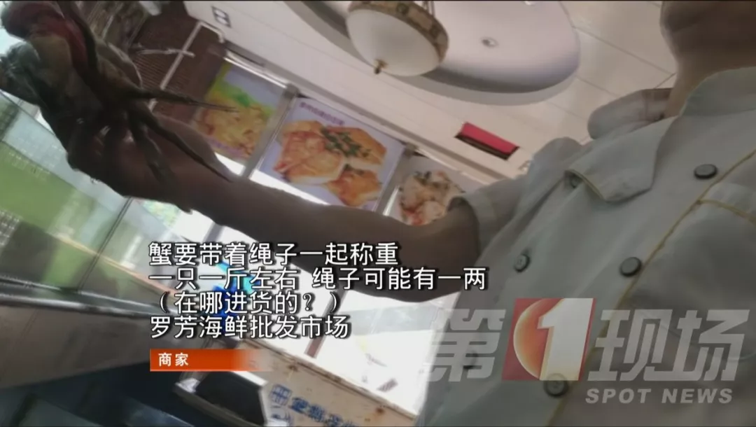 5日早上,記者走訪了羅芳水產(chǎn)批發(fā)市場附近的酒樓,發(fā)現(xiàn)酒樓售賣的膏蟹也是從羅芳市場進的貨,不過這里的膏蟹綁繩沒那么粗。