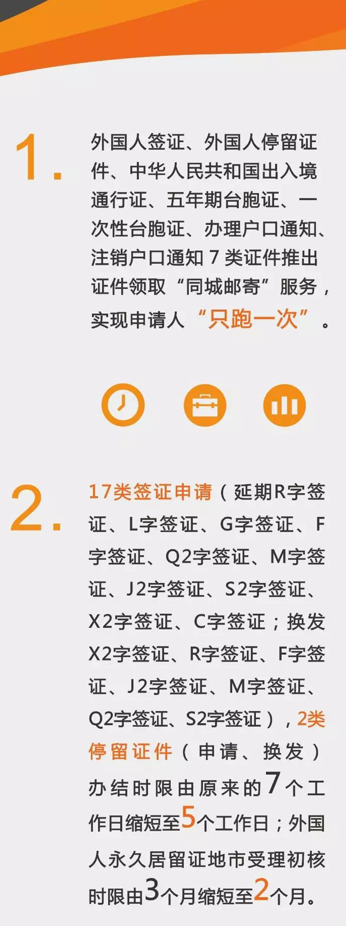見圳客戶端·深圳新聞網(wǎng)2019年11月11日訊 記者從深圳出入境了解到,為進一步優(yōu)化營商環(huán)境,提升人才流動便利,深圳市公安局出入境管理局再推出兩項境外人員出入境便利服務(wù)措施。包括7類證件領(lǐng)取可“同城郵寄”、2類停留證辦結(jié)時限縮短至5個工作日等,具體內(nèi)容如下: