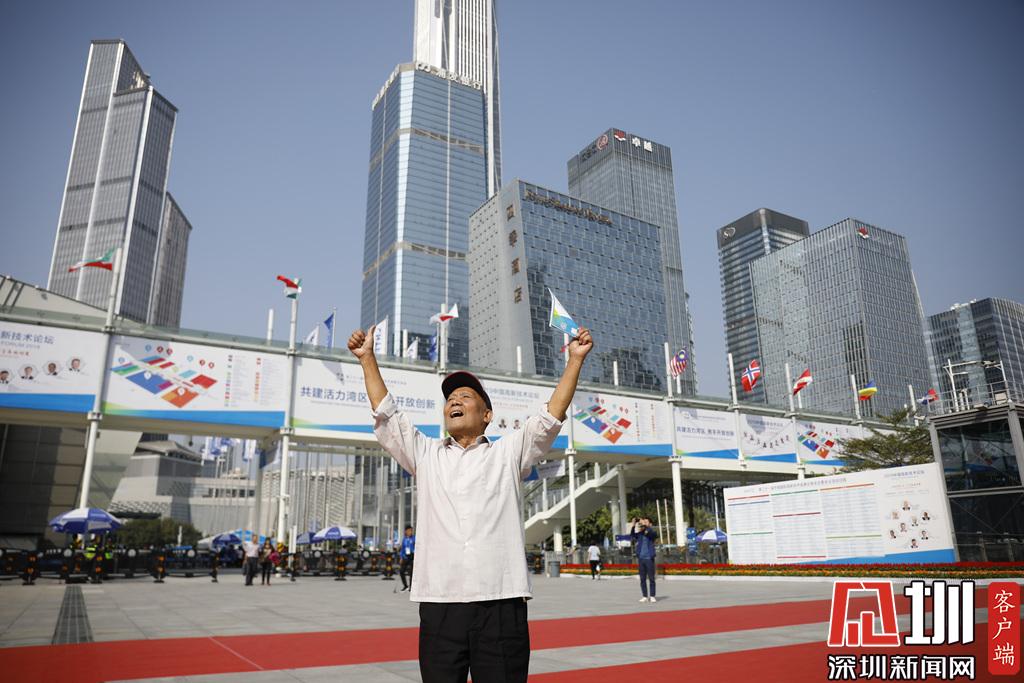 2019年11月14日,深圳會(huì)展中心,羅先生的兒子正在為他拍照。