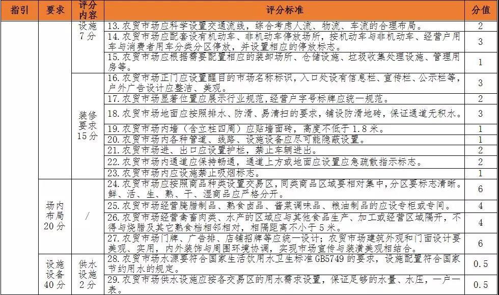 你想知道自家附近的農(nóng)貿(mào)市場達(dá)標(biāo)情況嗎?對照上面評審標(biāo)準(zhǔn)看看吧!