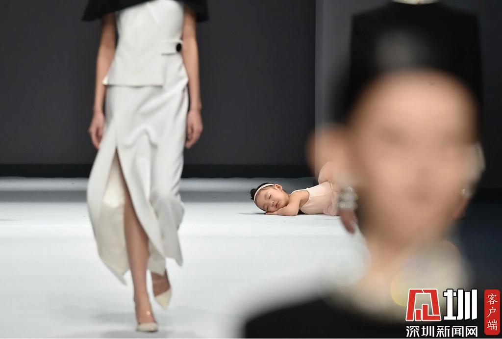 2019年3月15日,深圳時裝周,一位在T臺上睡著的小女孩。