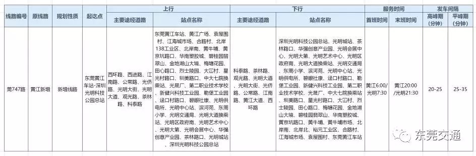 順便說一下,接駁深圳地鐵6號線的東莞跨市公交線路還有莞747路。