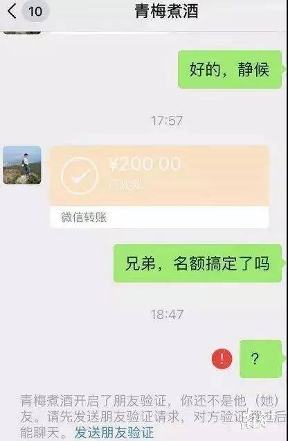 11月28日,一個(gè)網(wǎng)名為“青梅煮酒”的跑友在多個(gè)跑友群中發(fā)布了關(guān)于出售“深馬”參賽名額的消息。多名跑友私信聯(lián)系轉(zhuǎn)賬,沒(méi)想到付款后卻立即被拉黑。《深馬開(kāi)跑在即,花兩百元可買(mǎi)名額?多名跑友微信轉(zhuǎn)賬被騙》