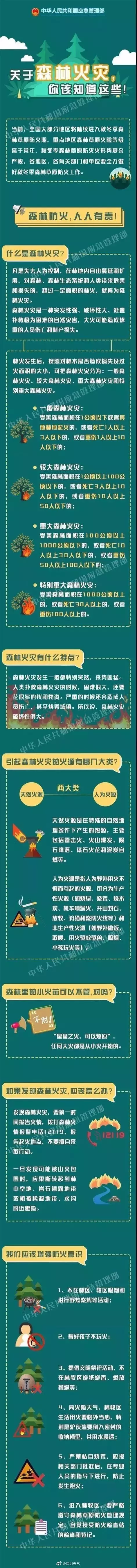 深圳市森林火災(zāi)報(bào)警電話:12119。