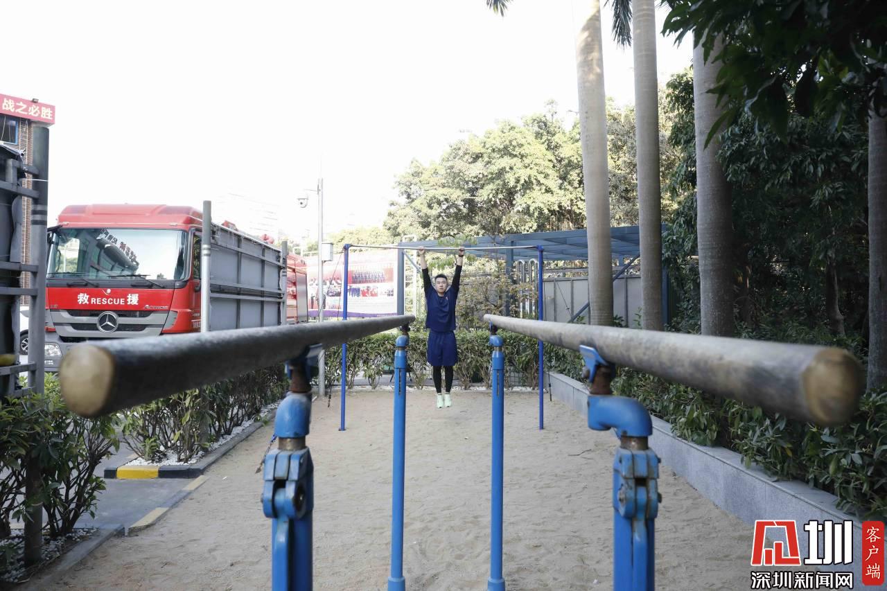 在沒有出警的時間段,鄭榮杰保持了健身的習慣。