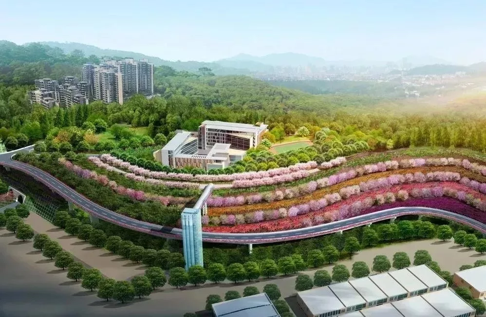 項目包括高架橋梁道路、由三部垂直電梯組成的上下山慢行系統(tǒng)、夜景燈光系統(tǒng)、邊坡綠化景觀等。