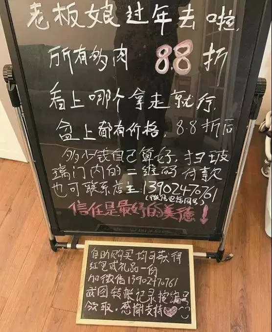 2019年春節(jié)期間,一位花店老板娘過年回家時,把幾百盆植物擺在門口,并放置了價格牌和二維碼。