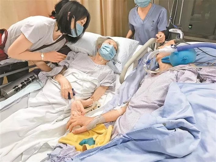 7月27日20點48分,香港大學(xué)深圳醫(yī)院的ICU病房里,兩位病重的老人的手握在了一起。在并排擺放的兩張病床上躺著的,是一對攜手恩愛57年的耄耋伉儷——高先生和彭女士。這兩位都已病重住院的老人,完成了或許是他們?nèi)松械淖詈笠幻?。這一幕,讓病床邊的許多親屬和醫(yī)務(wù)人員都淚流滿面。