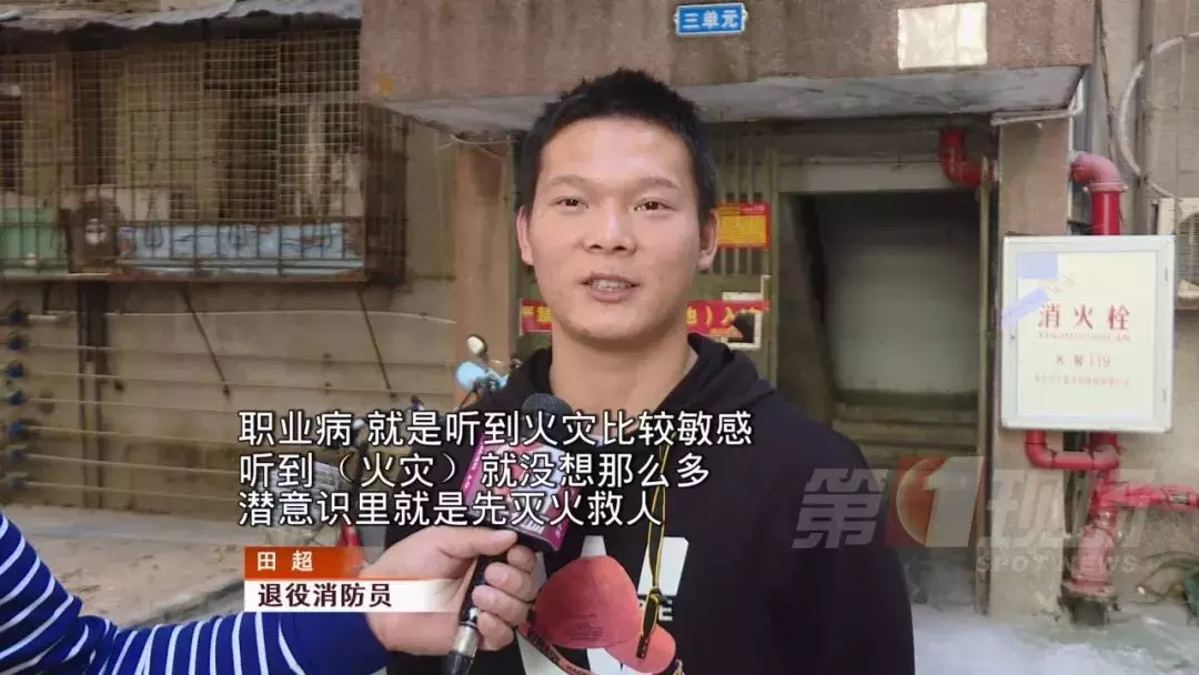 原來,田超是一名退役的消防員,一聽到火災(zāi),第一時間想的就是滅火救人。他的專業(yè)素養(yǎng)幫助了他,先將頂上的障礙物掃一掃,把火壓回去,再慢慢往里面攻。