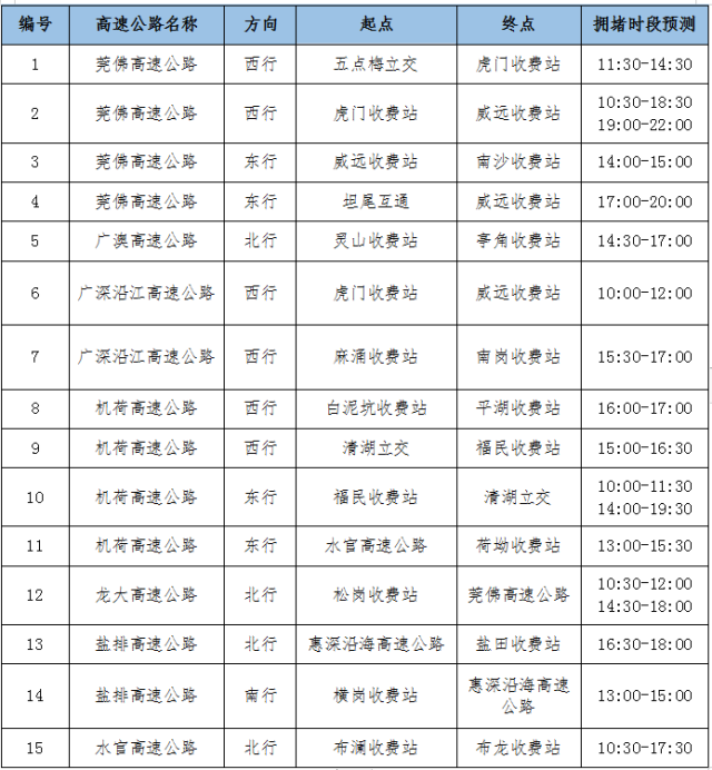 具體來(lái)看主要高速公路離深擁堵時(shí)段預(yù)測(cè),如果可以,避開這些時(shí)間: