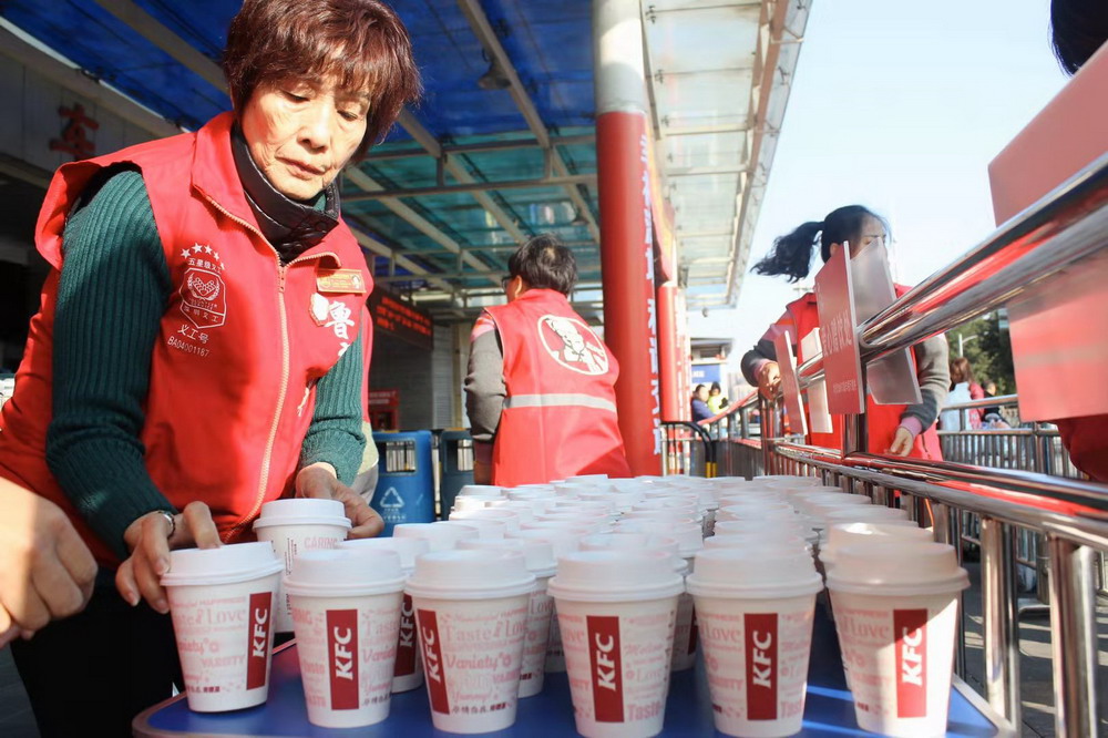 福永義工以及深圳肯德基工作人員現(xiàn)場(chǎng)贈(zèng)送熱飲。