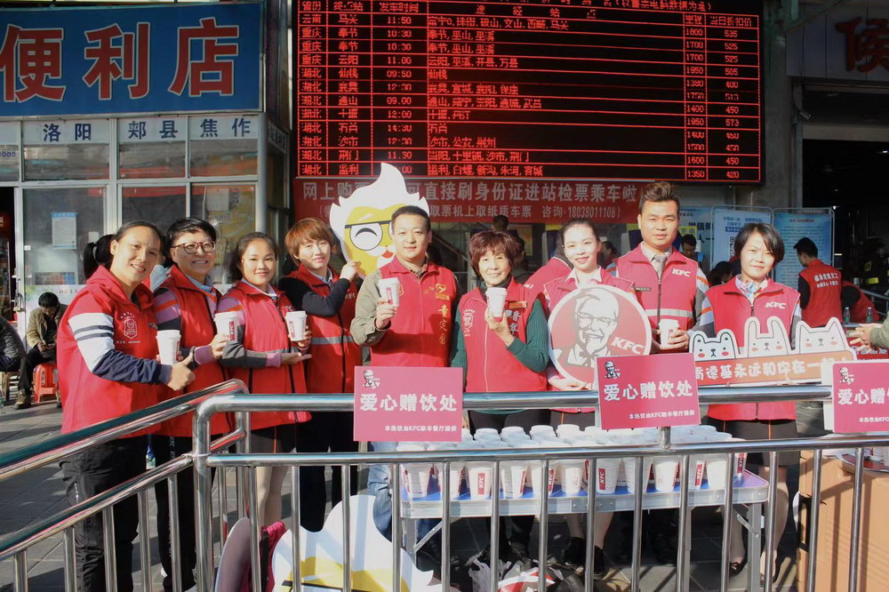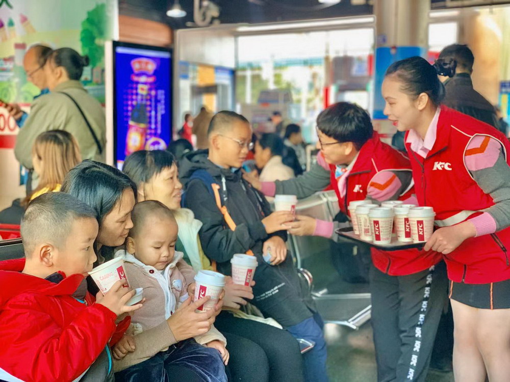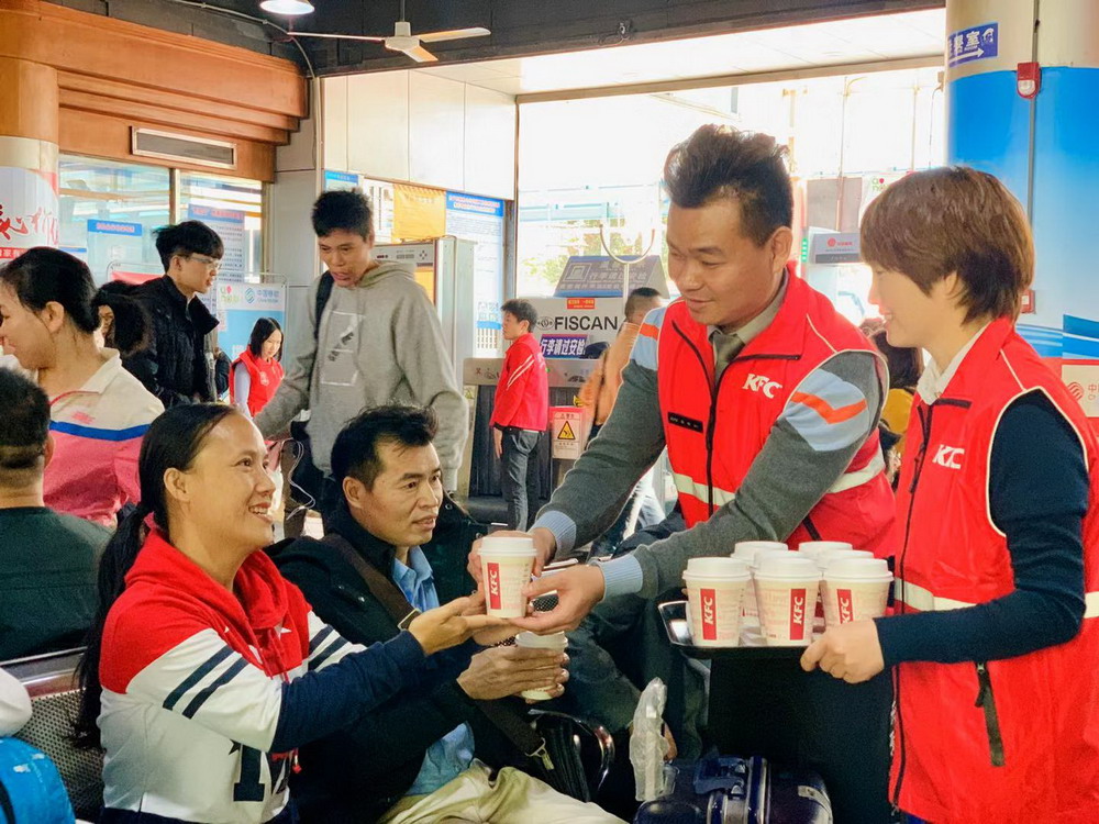 春節(jié)臨近,深圳福永汽車站迎來旅客返鄉(xiāng)的高峰。1月12日,深圳肯德基聯(lián)合福永義工聯(lián)為返鄉(xiāng)的建設(shè)者贈(zèng)送1000杯愛心熱飲,將溫暖與愛帶回家。據(jù)悉,這是深圳肯德基第三年參與春運(yùn)愛心贈(zèng)飲活動(dòng)。