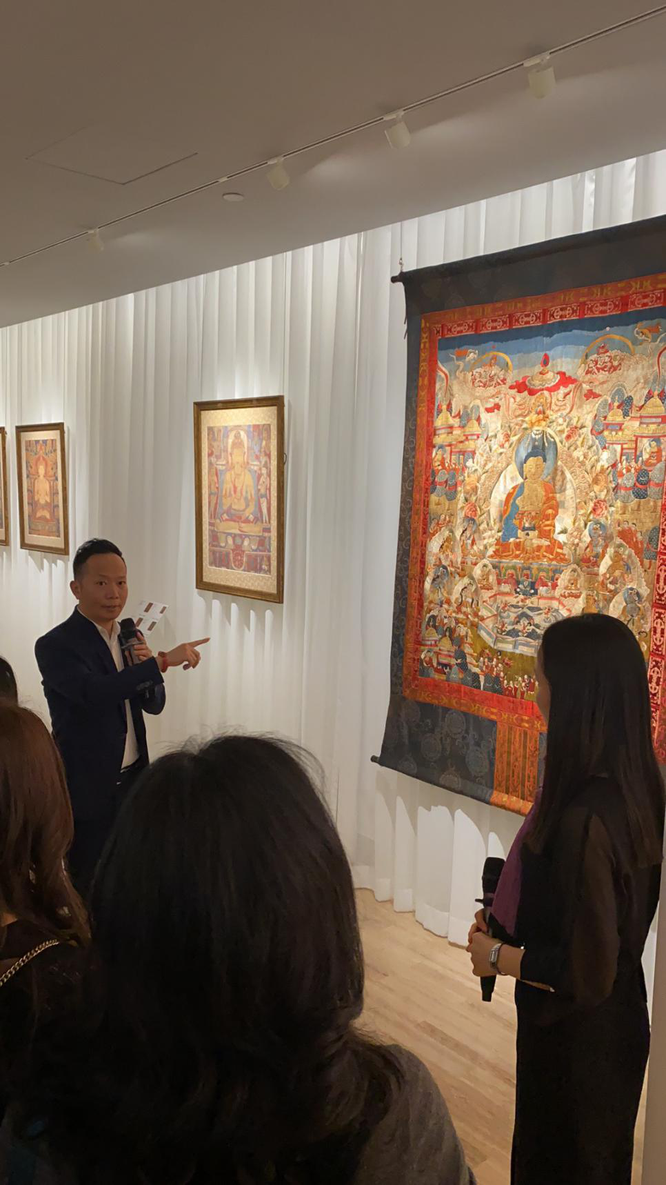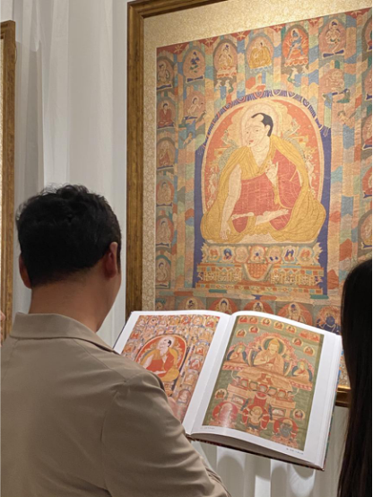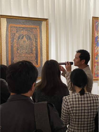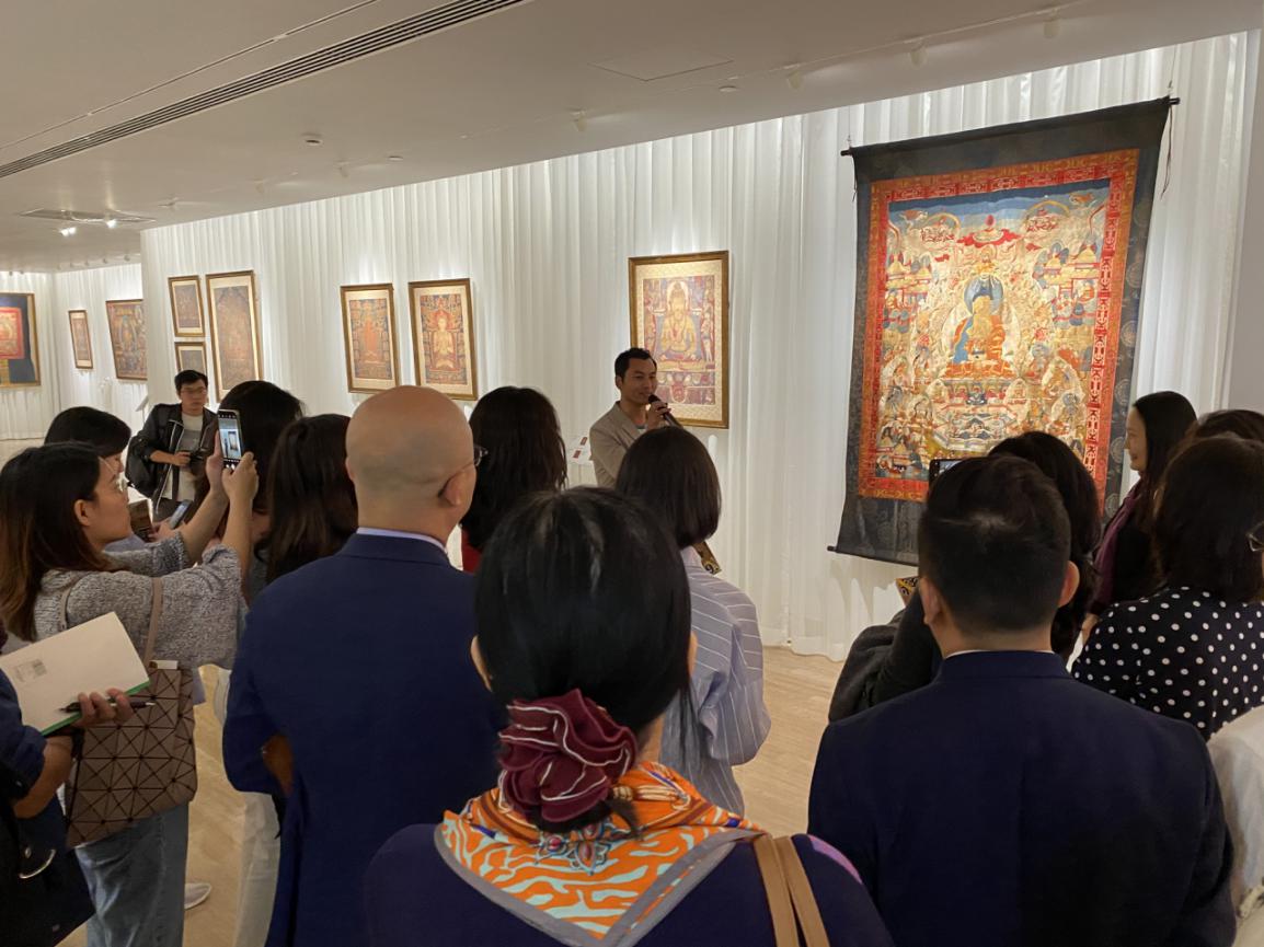為了讓觀眾更好地了解本次展出唐卡的工藝美及其背后所蘊(yùn)含的人文價(jià)值,桂心堂主人邀請了布達(dá)拉宮唐卡專家——次仁占堆老師、曾長期生活于蘇州的資深唐卡愛好者葉小龍,一同在1月4日的下午,給觀眾們帶來了一場深入淺出的導(dǎo)覽活動。
