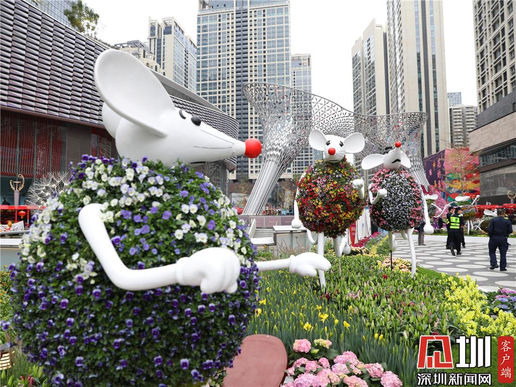 花市主會(huì)場(chǎng)布置有鼠年為主題的花藝。