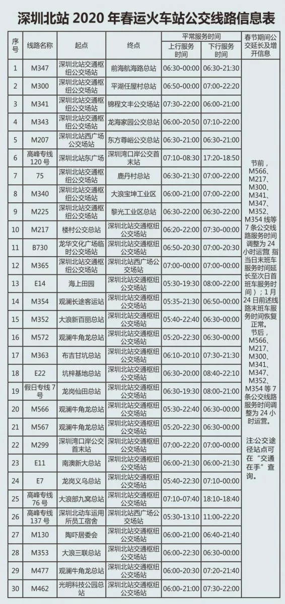 史上最全!深圳各大火車站途經(jīng)公交線運(yùn)營時間都在這兒!