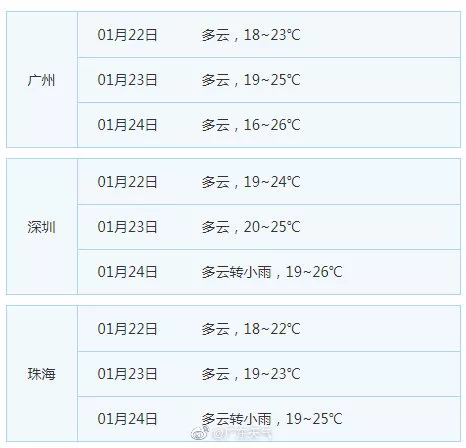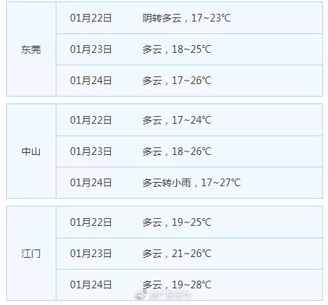 廣東21個(gè)地市的天氣預(yù)告