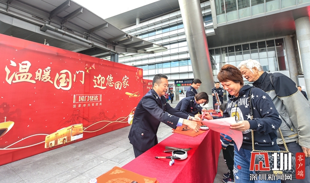 見圳客戶端·深圳新聞網(wǎng)2020年1月22日訊(見圳客戶端、深圳新聞網(wǎng) 記者 張玲 通訊員 劉姝夢)巍巍國門彰顯大國風(fēng)范,涓涓暖流展現(xiàn)為民情懷。不辭風(fēng)雪的歸鄉(xiāng)路上,國門——就是您的第一道家門。根據(jù)國家移民管理局統(tǒng)一部署,2020年1月17日至2月1日,深圳邊檢總站積極開展“溫暖國門迎您回家”主題活動,在各口岸出入境現(xiàn)場設(shè)置“國門驛站”,擺放“國門同框”合影墻、“家國情懷”留言板,點綴體現(xiàn)中國年的傳統(tǒng)文化元素表達(dá)祝愿,著力提升廣大出入境人員特別是歸國返鄉(xiāng)人員的獲得感、幸福感和歸屬感,各口岸沉浸在濃濃的年味里。