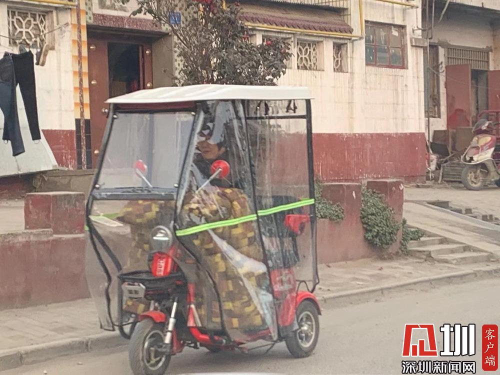 這個(gè)車車名字叫“三蹦子”,外面還加了防風(fēng)外套。爸爸說他們小時(shí)候走親戚或者趕集的時(shí)候都坐它。見圳客戶端、深圳新聞網(wǎng)記者 劉婷 攝