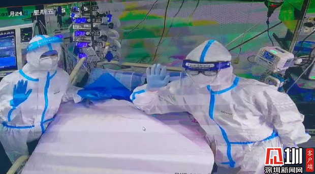 市三院醫(yī)護(hù)人員在感染ICU和大家打招呼,感謝市民朋友的關(guān)心和愛(ài)護(hù)。