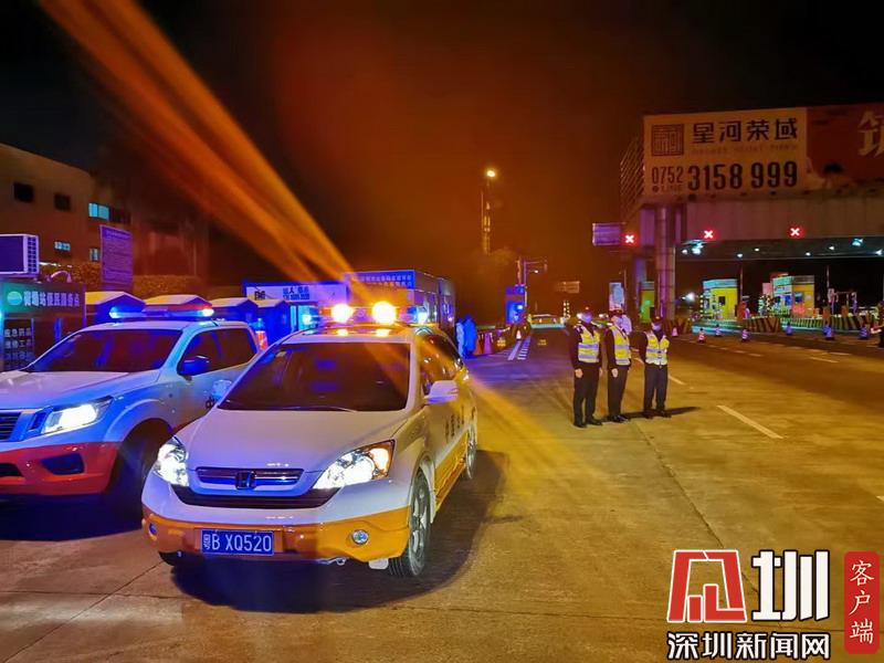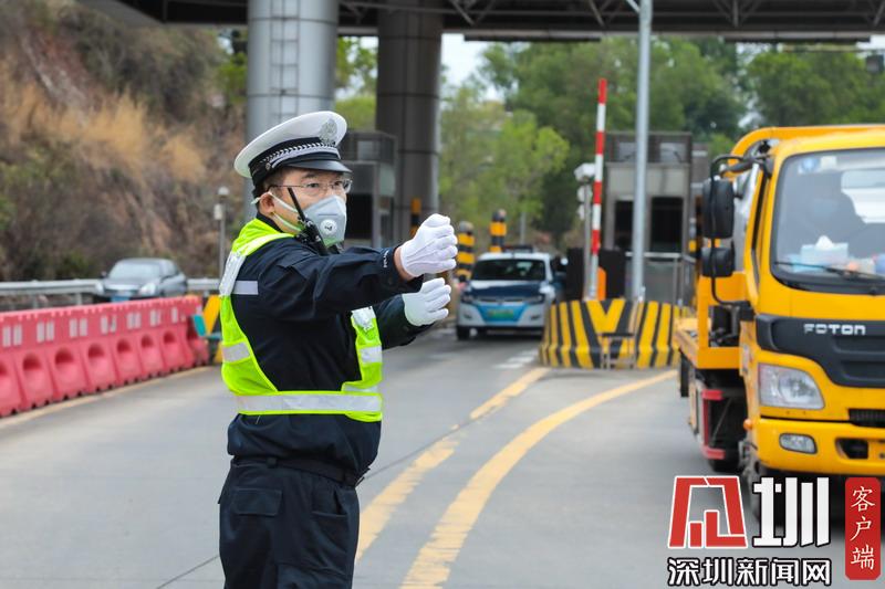 深圳交警在黃鶴收費站指揮交通。