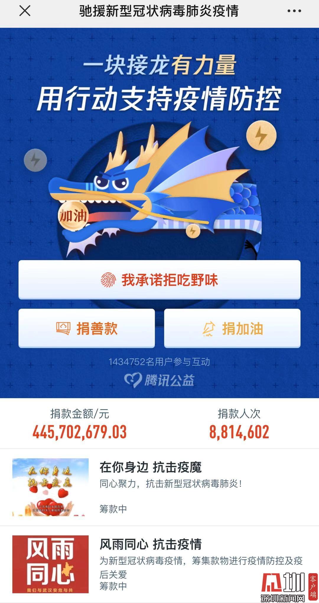 此外,騰訊公益也開通馳援新冠疫情籌集善款的專項(xiàng)平臺(tái),該平臺(tái)上已有53家慈善組織啟動(dòng)執(zhí)行工作。截至2月2日下午6點(diǎn)45分,該平臺(tái)籌集善款445702679.03元,累計(jì)捐款達(dá)8814602人次。目前這些啟動(dòng)執(zhí)行工作的公益組織都在按照騰訊公益平臺(tái)和運(yùn)營(yíng)規(guī)則進(jìn)行。騰訊公益平臺(tái)也將通過“透明機(jī)制“追蹤這些的項(xiàng)目的執(zhí)行情況。