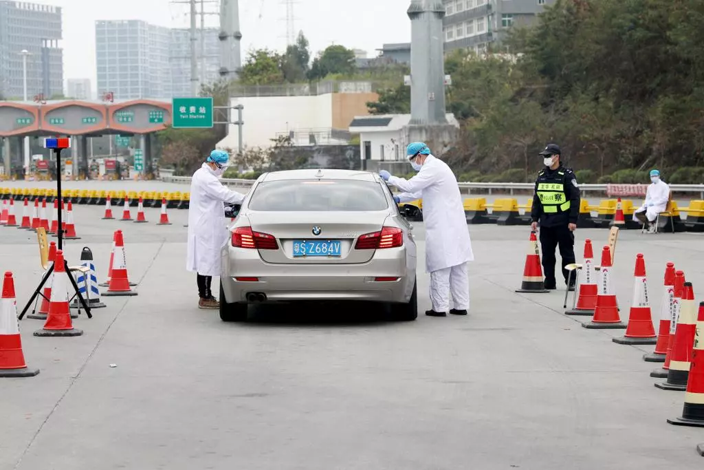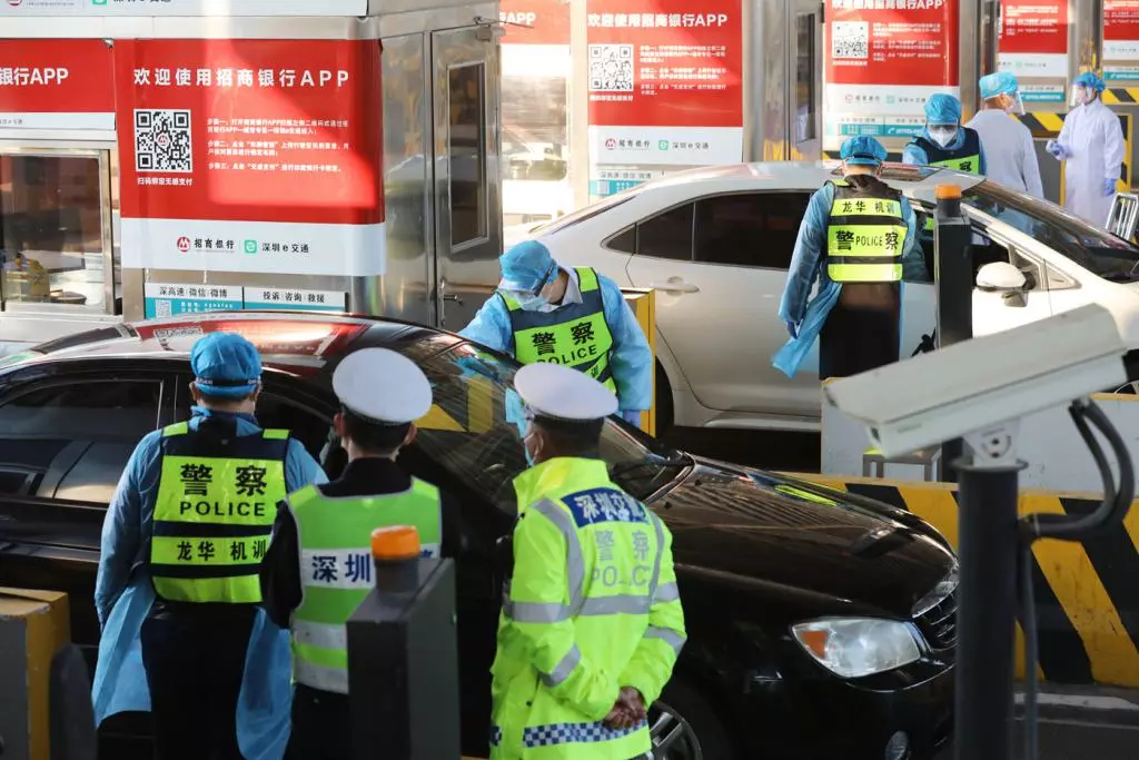 2月2日中午,深晚記者來到梅觀高速觀瀾收費站,發(fā)現這里開通了4條車道供車輛通行,現場有超過20名民警、醫(yī)務人員檢測入深車輛司乘人員的體溫。