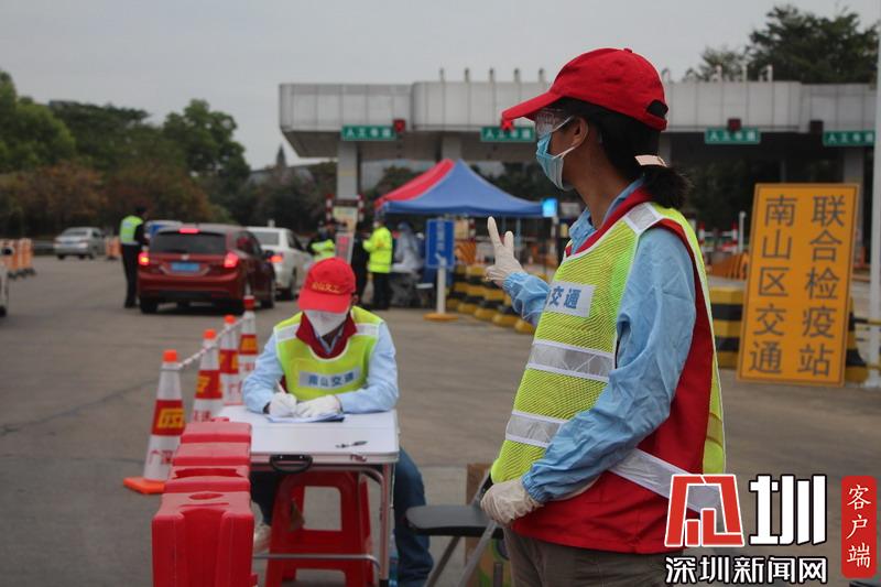 見圳客戶端·深圳新聞網2020年2月3日訊(見圳客戶端、深圳新聞網記者吳梓欣)眼下正值返深高峰期,為控制疫情影響,近日,深圳交通運輸局在城市出入要道都設置了檢疫區(qū)?!按蜷_車窗,帶好口罩,測量體溫……”2月2日,記者在南頭收費站看到交警正為過往車輛及人員測量體溫,在身著“南山交通”黃馬甲的交通檢查隊伍中還有一抹熟悉的紅色——深圳義工。