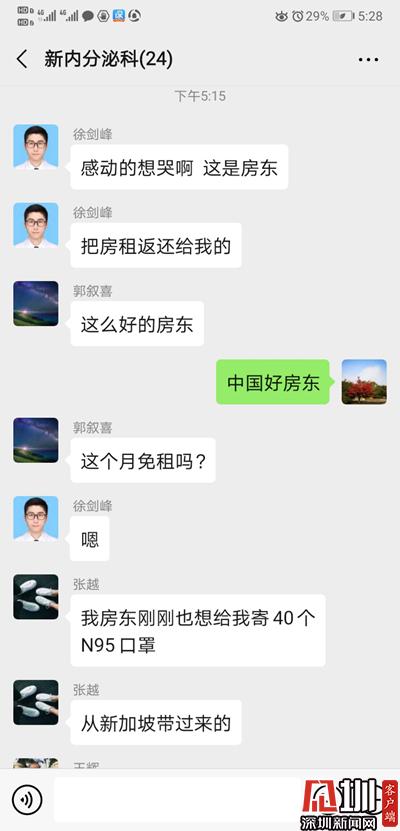 2日上午,寶安中醫(yī)院(集團)隔離病房工作的徐醫(yī)生,遇到了令他十分感動的事。他通過微信向房東交房租,房東問他是不是在防控前線工作,徐醫(yī)生以為房東怕傳染而嫌棄他,連忙向房東解釋自己做好了防護消毒,不用擔心,沒想到房東直接把房租退了回去,表示要支持徐醫(yī)生在前線工作,真是暖心??!