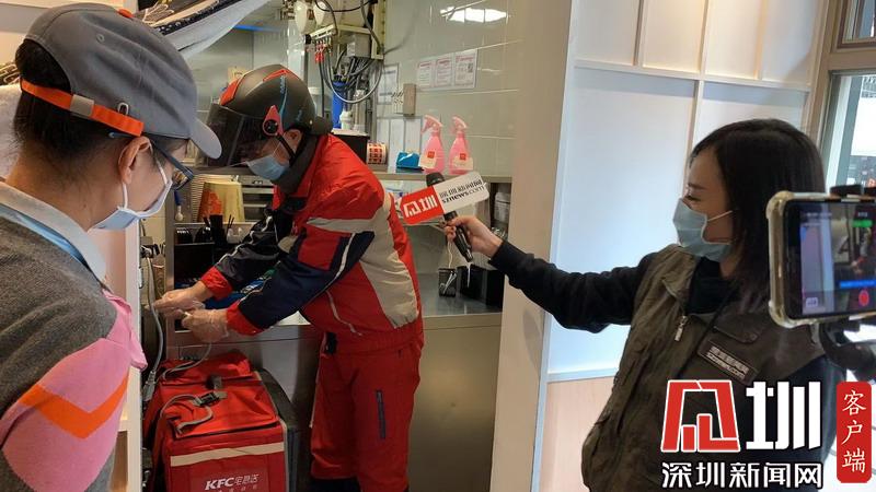外賣小哥全面消毒后方可取餐。