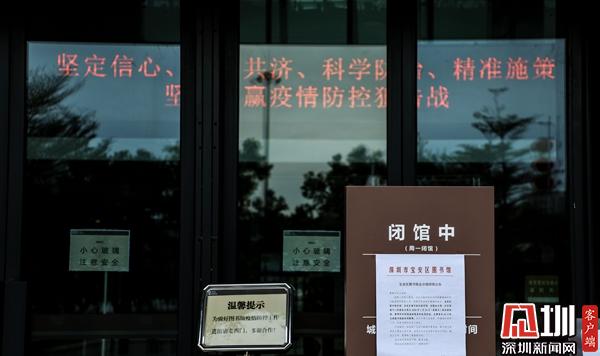 寶安圖書館:透過(guò)玻璃窗往里看,館內(nèi)空蕩蕩的場(chǎng)景與往日形成鮮明對(duì)比。