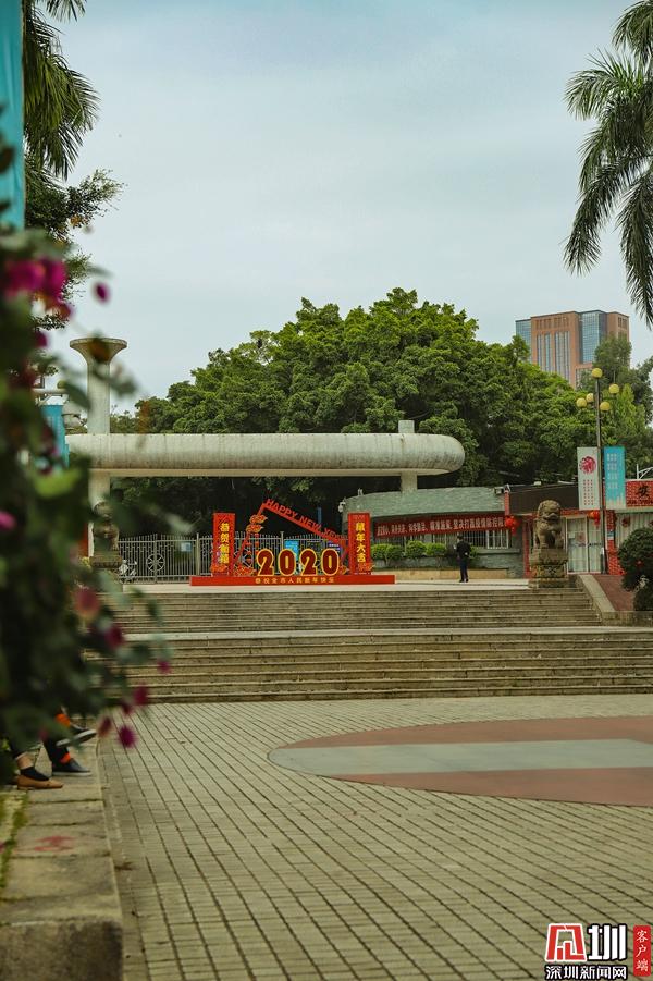 靈芝公園:公園門口還擺放著春節(jié)的裝飾。