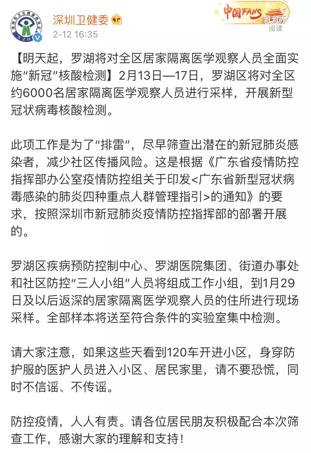 徹底“排雷”!深圳免費為所有居家隔離者檢測“新冠”病毒核酸