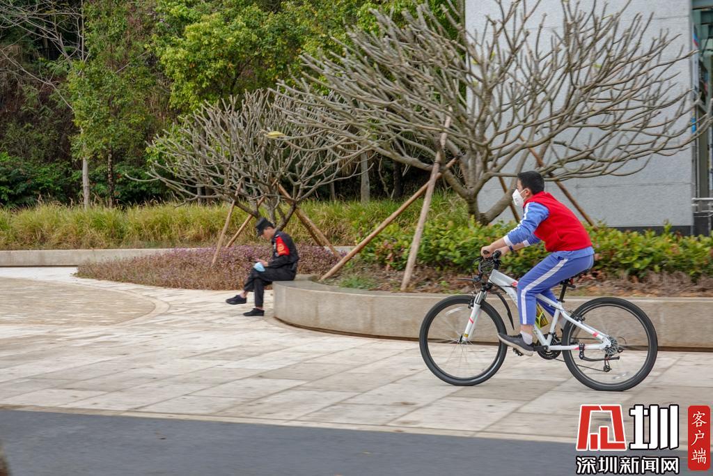 學(xué)生在紅荔路旁的輔道騎單車遛彎
