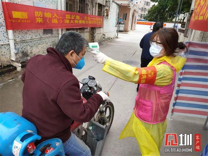 來(lái)自龍崗區(qū)南嶺村的鄧育芳,是不少租戶(hù)的房東,也是值守在南嶺南路黨員先鋒崗的一名村民志愿者。連續(xù)十多天,她每天在村口站立整整7個(gè)小時(shí),不停為出入居民測(cè)量體溫、詢(xún)問(wèn)來(lái)源地、查驗(yàn)申報(bào)二維碼、引導(dǎo)注冊(cè)。