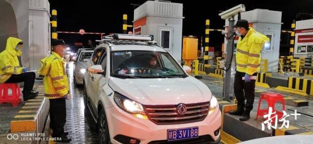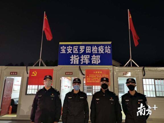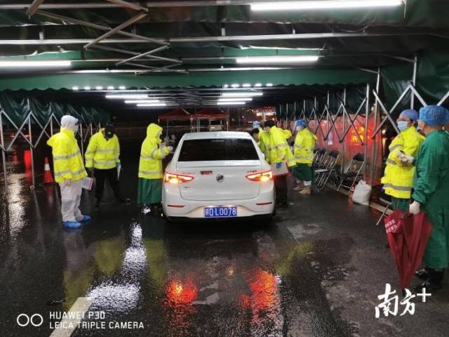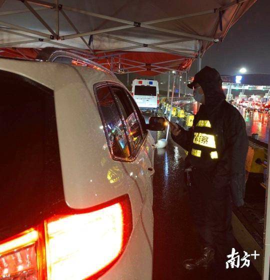 寶安區(qū)羅田檢疫站指揮部總指揮,石巖街道黨工委副書記、人大工委主任鄧亞虎,石巖街道副主任林志明和羅田交通聯合檢疫站臨時黨支部黨員冒雨檢查。當晚,深圳市公安局經偵支隊支援4名民警在現場冒雨防疫檢查。